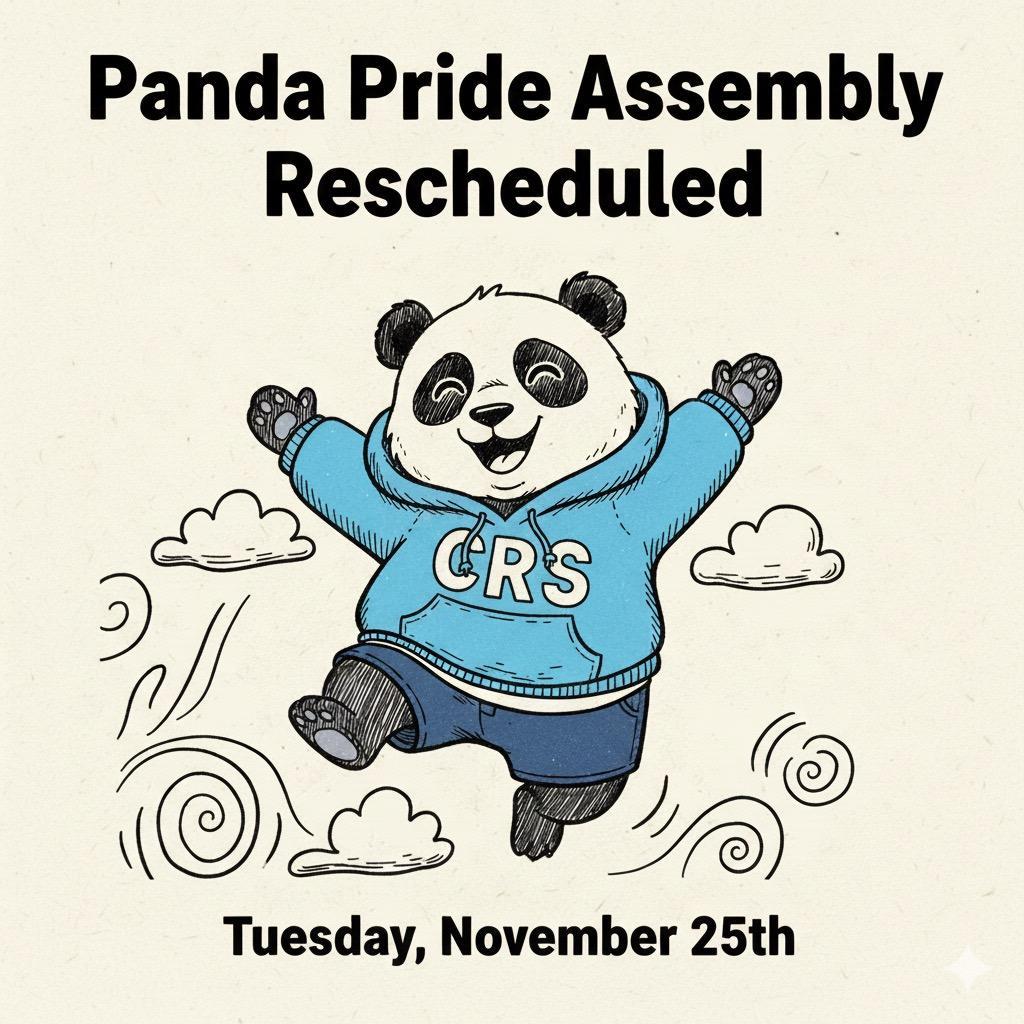 CRS Panda Pride Assembly rescheduled for Tuesday 11/25